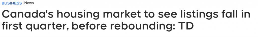 新闻来源:https://www.ctvnews.ca/business/canada-s-housing-market-to-see-listings-fall-in-first-quarter-before-rebounding-td-1.6266691 https://economics.td.com/ca-housing-supply